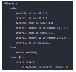 조인 쿼리 하나로 회원과 주문 엔티티를 가져올 수 있는 것을 확인할 수 있다.