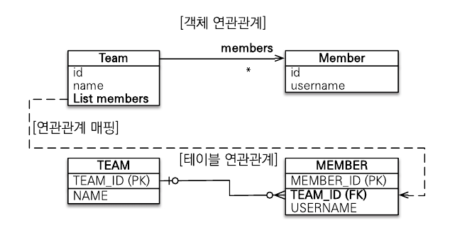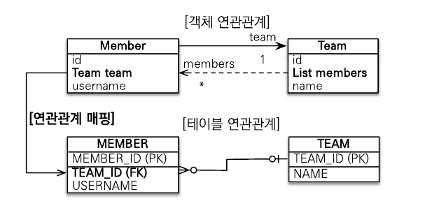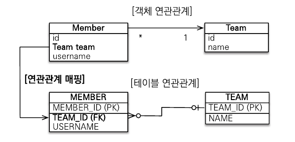 주 객체가 대상 객체를 참조하는 것처럼 주 테이블에 외래 키를 두고 대상 테이블을 참조한다.