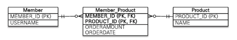 MemberProduct 엔티티를 보면 기본 키를 매핑하는 @Id와 외래 키를 매핑하는 @JoinColumn을 동시에 사용해서 기본 키와 외래 키를 한 번에 매핑했다. 그리고 @IdClass를 사용해서 복합 기본 키를 매핑했다.